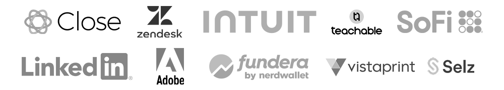 I’ve been at this for 15 years, working with big brands like… LinkedIn, Google, Intuit, Adobe, and high-growth startups like Zendesk, Close, CreativeLive, SoFi, and many more. My team is based in Los Angeles & work with clients around the world.