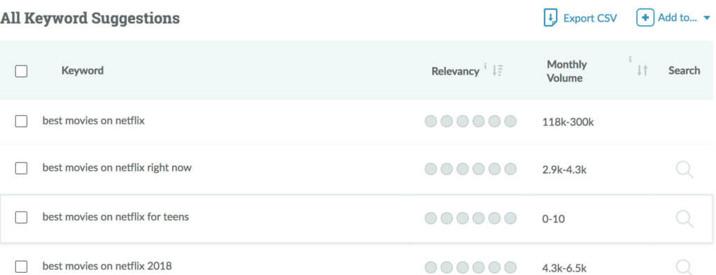For “best movies on Netflix” Moz suggested “best teen movies on Netflix” for example, this is a smaller place to start and would be easier to rank when starting out.