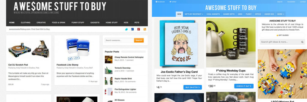 In 2012 I was looking for fun stuff to buy so I searched “awesome stuff to buy” and after seeing plenty of sites just using Amazon’s affiliate program I knew there was potential in this niche.