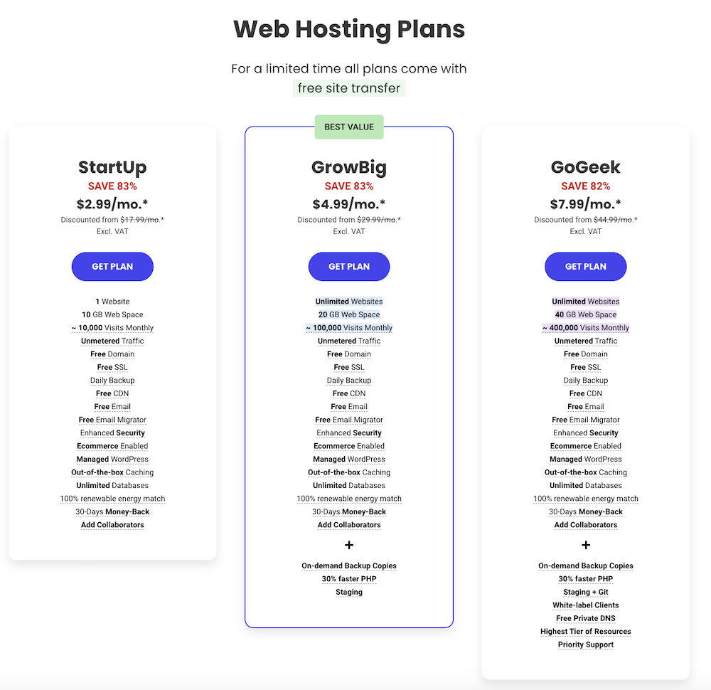 - SiteGround Web Hosting Plans: $2.99/mo
