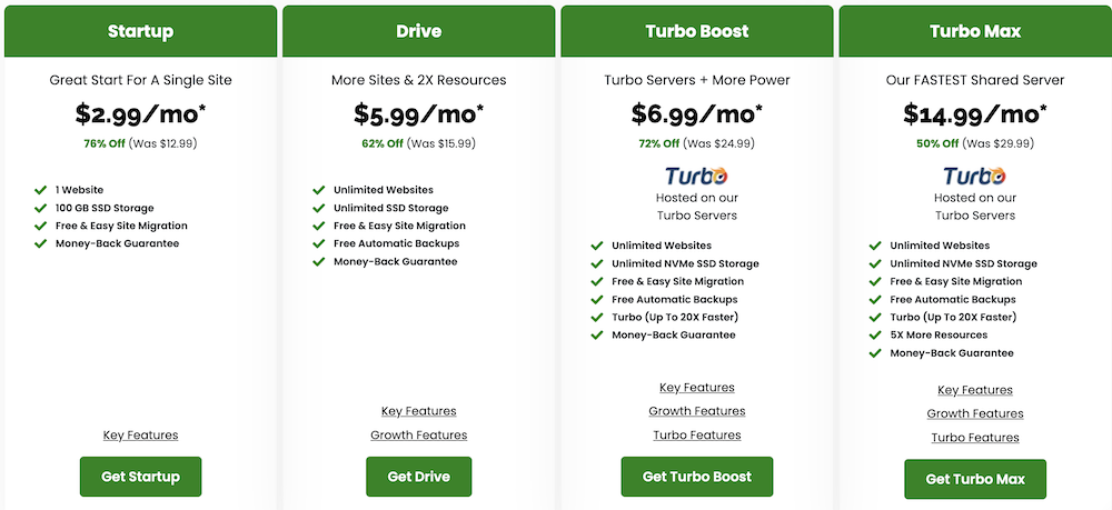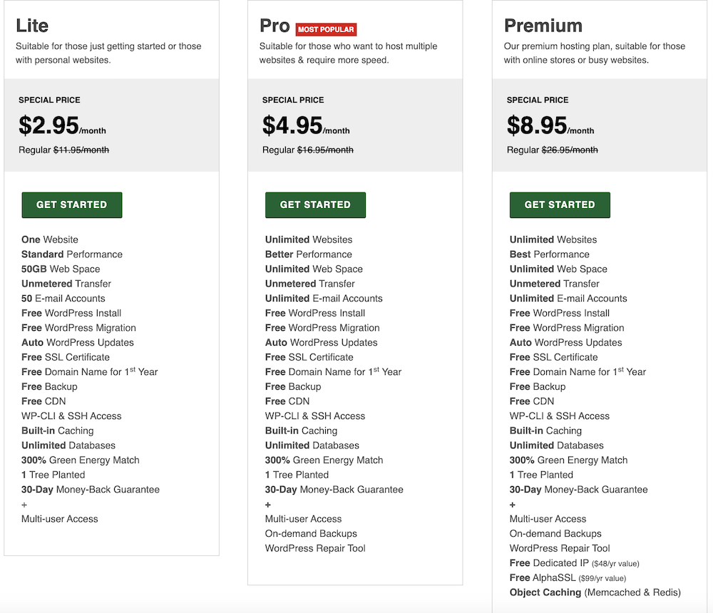 - GreenGeeks Web Hosting Plans: $2.95/mo
