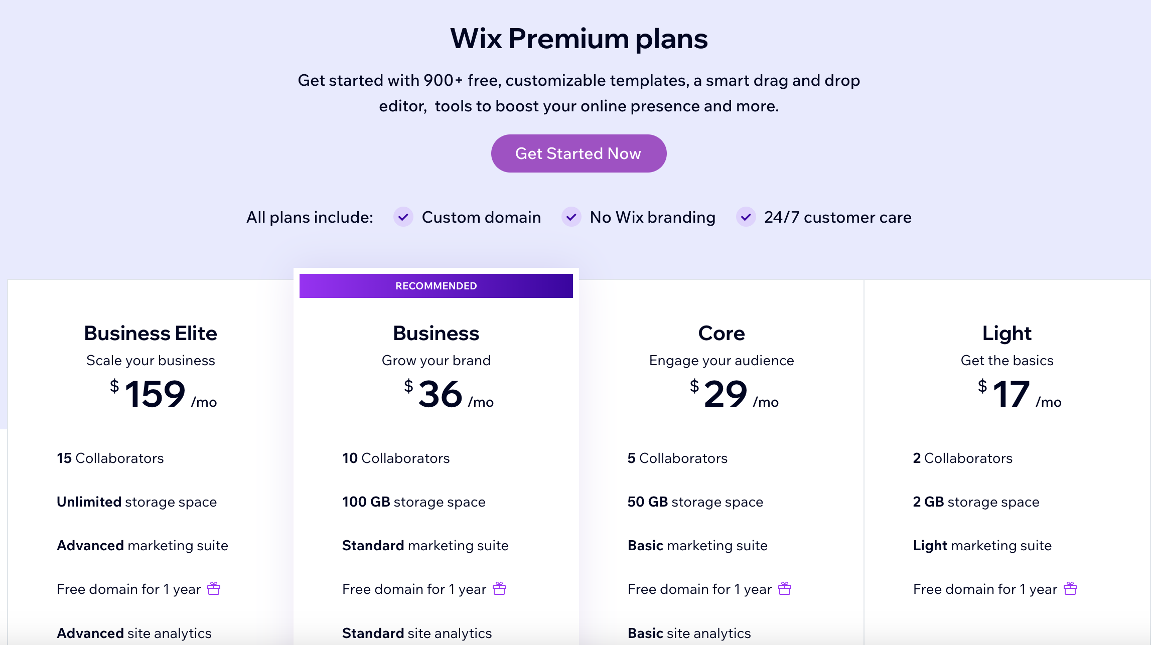 You must upgrade to a paid plan if you want your website free from branding. Plans start at $25 a month and go as high as $45 a month.