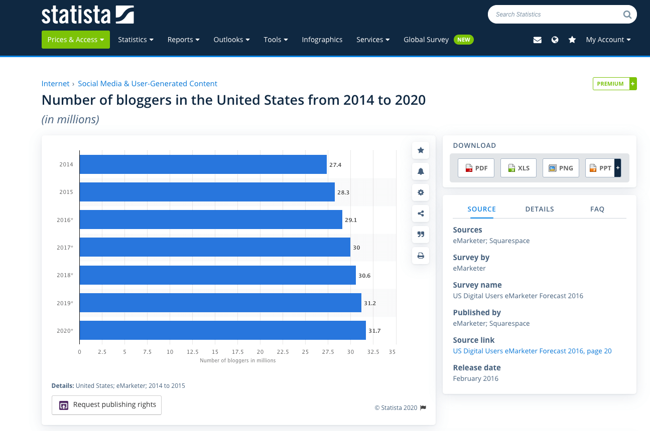 “31.7 million bloggers by the end of 2020 (in the US alone). ”