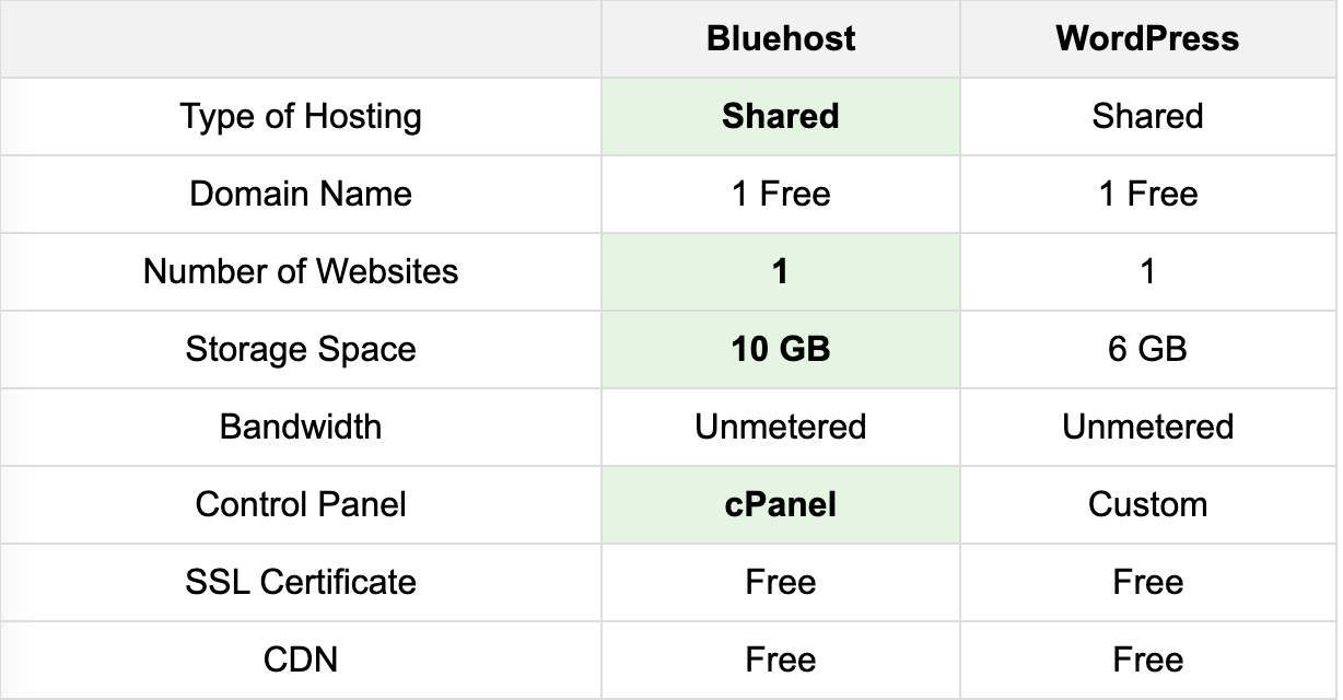 Both Bluehost and WordPress offer shared hosting plans.