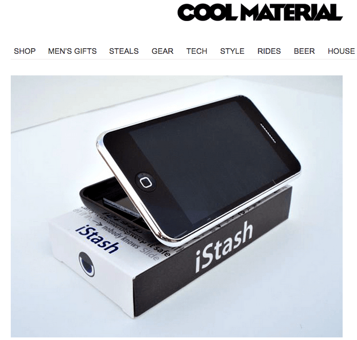 The next morning, my inbox blew up with orders… Ben got the iStash featured on the homepage of CoolMaterial that gets tens of thousands of visitors a day.