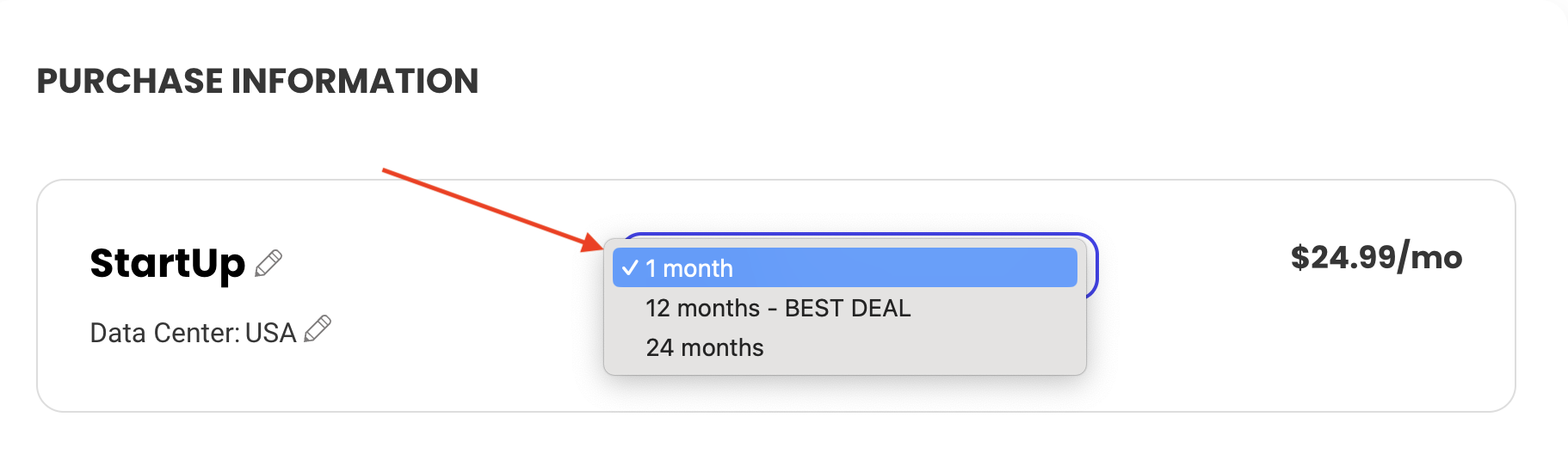 Don’t forget to toggle the payment option over to “monthly” during the checkout process, as the default view will be on yearly pricing. You’ll now be on their monthly billed hosting plan that charges on a month-to-month basis moving forward (with no minimum contract duration).