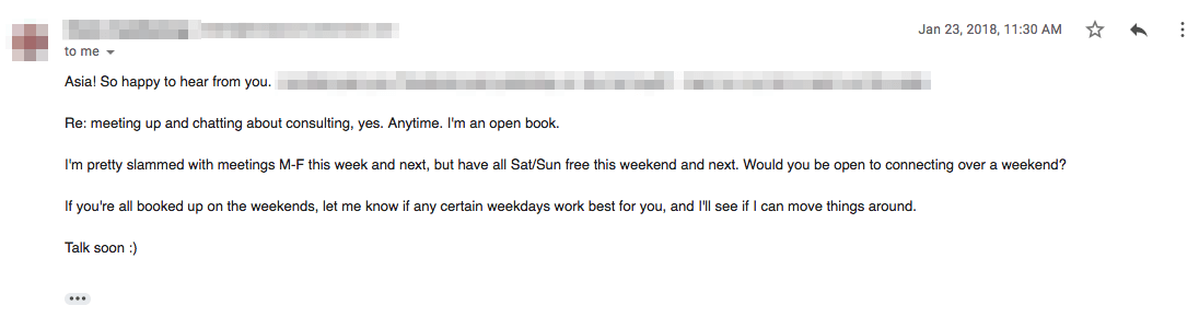 After hand-picking a few people I really trusted and admired, I reached out and offered to buy them lunch in exchange for their insights on the current market.