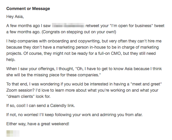 Still, I started out like most new freelancers or entrepreneurs do: reaching out to their network.