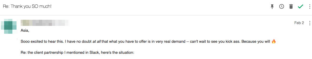 Before I made the call, I actually already had two clients, and they were what pushed me over the edge to go completely cold-turkey.