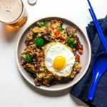 Plate the rice and top each plate with an egg. Finish with cilantro and enjoy immediately.